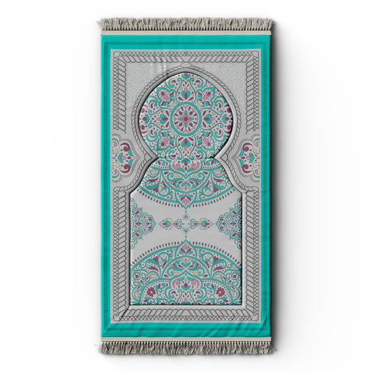 Luxury Velvet Prayer Mat "Doaa (دعاء)" in Mint Green سجاده صلاه قطيفه فاخره