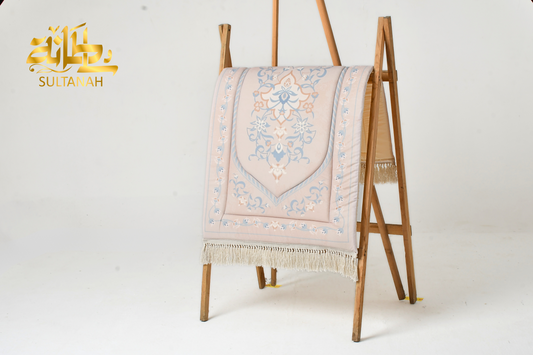 Sultanah represents a brand that harmoniously merges tradition with modernity, infusing the sacred act of prayer with a touch of luxurious comfort. Our dedication to impeccable craftsmanship and unwavering quality forms the essence of every Sultanah prayer mat, blending comfort and reverence seamlessly.